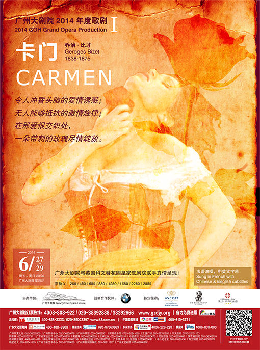2014年,廣州大劇院再次大膽突破,首次挑戰(zhàn)法國歌劇。6月27日至29日登場的《卡門》成為廣州大劇院與英國科文特花園皇家歌劇院二度連手的力作,這也是此版本自2006年首演以來第一次完整的在倫敦以外的場館演出,將其近年來最復(fù)雜的重磅歌劇《卡門》直運(yùn)羊城。丹尼爾·歐倫第五度指揮廣州大劇院年度歌劇,善于揣摩人物心理、狂野性感的意大利國寶級(jí)歌劇女神、亦是原創(chuàng)女主角安冬娜琪領(lǐng)銜主演卡門,成為今年歌劇舞臺(tái)上最耀眼的明星。此次,廣州大劇院的舞臺(tái)上第一次有真的動(dòng)物登臺(tái),而復(fù)雜的舞美布景及道具,以及眾多合唱演員、舞臺(tái)演員、童聲合唱的調(diào)度及協(xié)調(diào),極大的挑戰(zhàn)了廣州大劇院歌劇制作管理團(tuán)隊(duì)。其中,廣州大劇院自行培養(yǎng)的童聲合唱團(tuán)首次登臺(tái)獻(xiàn)演,開啟了“課堂×舞臺(tái)”的藝術(shù)教育新模式,在國內(nèi)屬于首次嘗試。